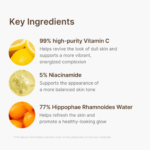 - Vitamina C 99% de alta pureza (encapsulada) – Ilumina, revitaliza y mejora el aspecto de la piel opaca