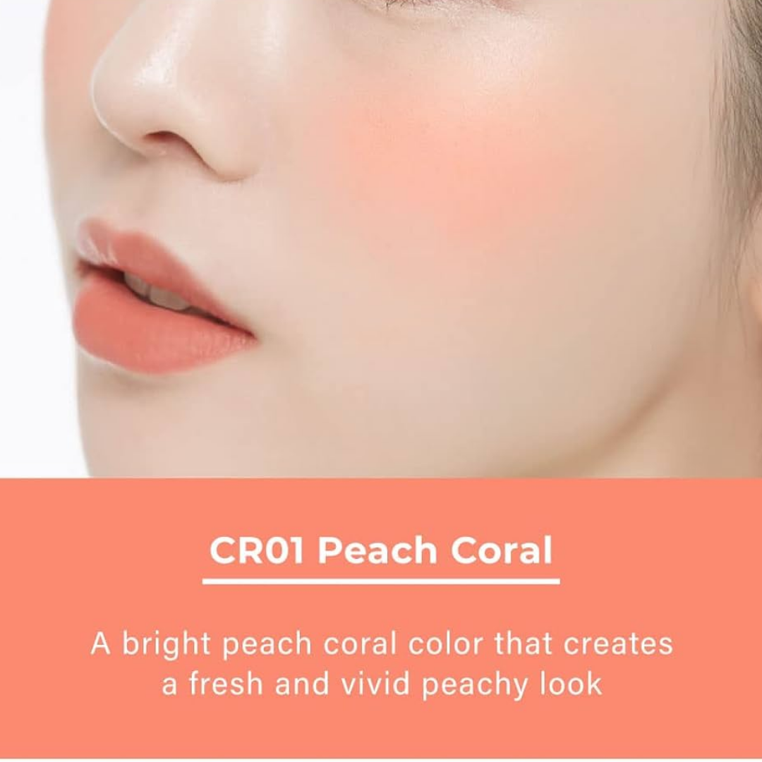 Es un popular producto de belleza coreana conocido por su exclusiva textura elástica de crema a polvo que brinda un color coral melocotón natural y modulable con un acabado suave y húmedo.