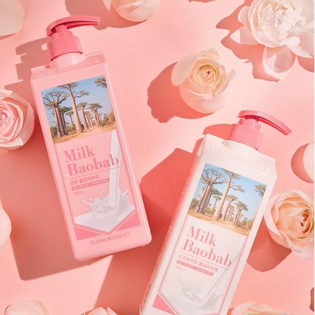 Este shampoo está formulado con ingredientes como proteína de leche, extracto de semilla de baobab y un «complejo floreciente» de cuatro flores para ayudar a hidratar y revitalizar el cabello dejando un aroma agradable