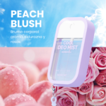 Fragancia Peach-Blush: Un aroma a melocotón claro y vivo con notas frutales como manzana, limón, fresia, madreselva, rosa para una sensación refrescante.