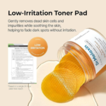 Es un toner en formato pads (discos empapados en esencia) que combina ingredientes exfoliantes y aclaradores para ayudar a mejorar el tono desigual de la piel, reducir manchas y suavizar la textura.