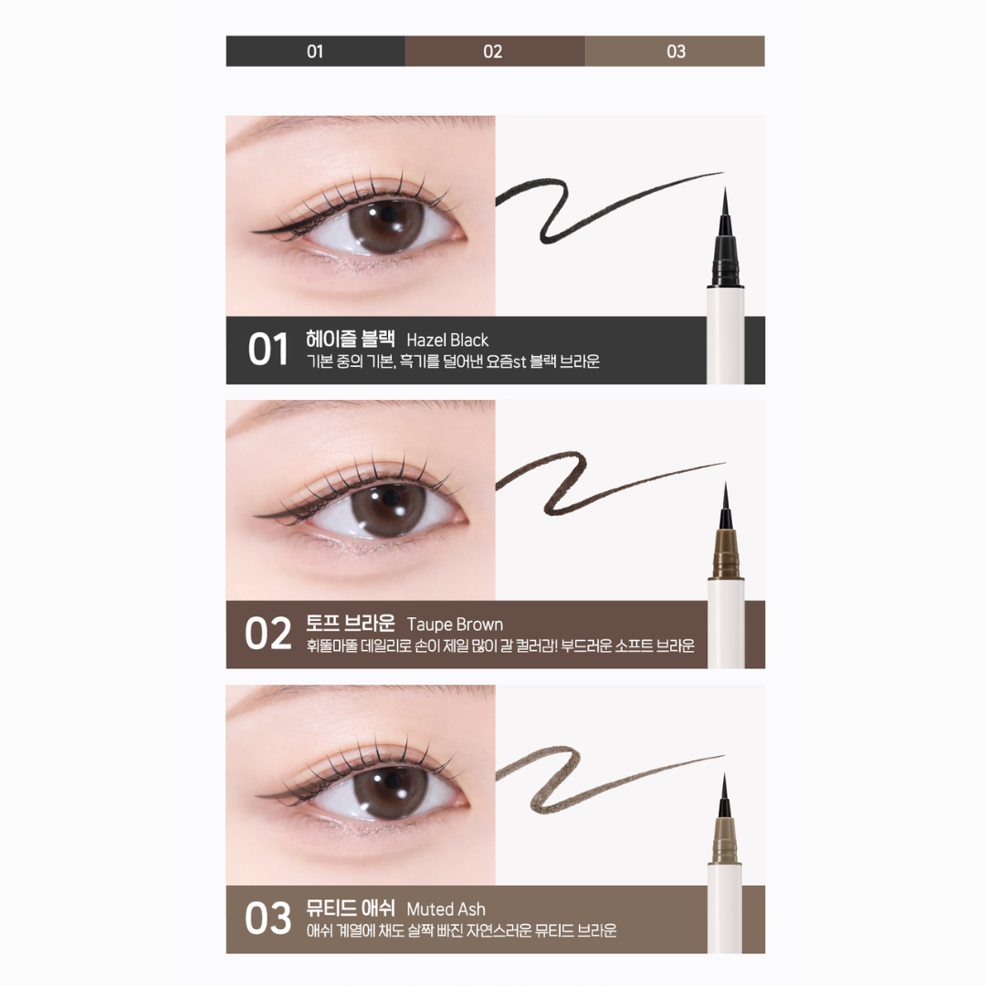 Delineador con punta tipo pincel muy delgada que permite aplicar el producto con precisión desde la raíz de las pestañas hasta la punta. Ideal para looks desde naturales hasta delineados finos y definidos.