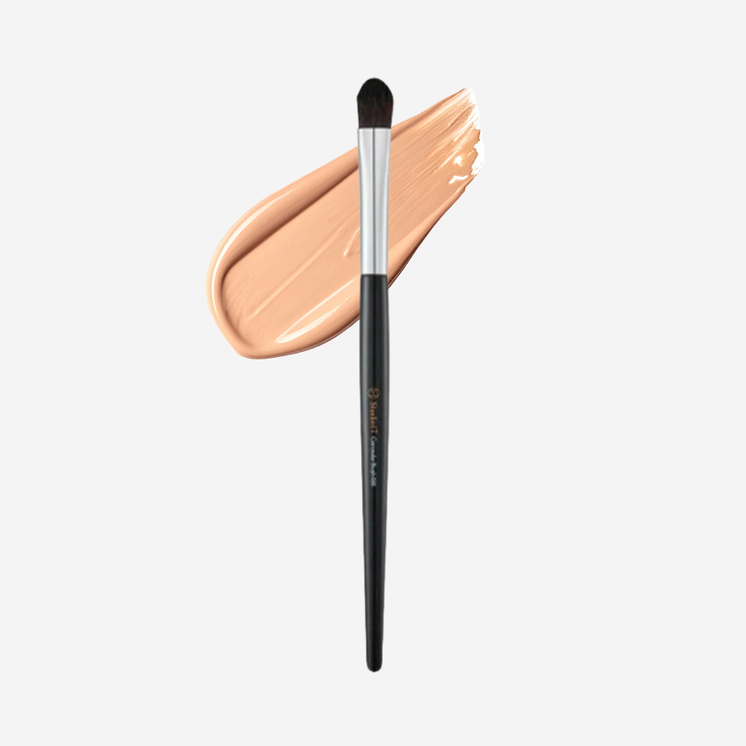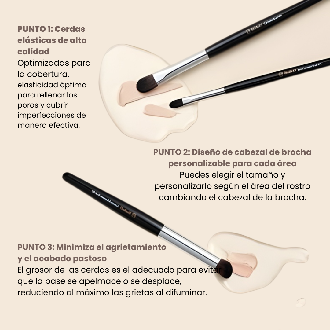 Aplica el corrector en la piel o en la brocha y extiende con movimientos suaves sobre la zona deseada, difumina dando ligeros toques hasta lograr un acabado uniforme.